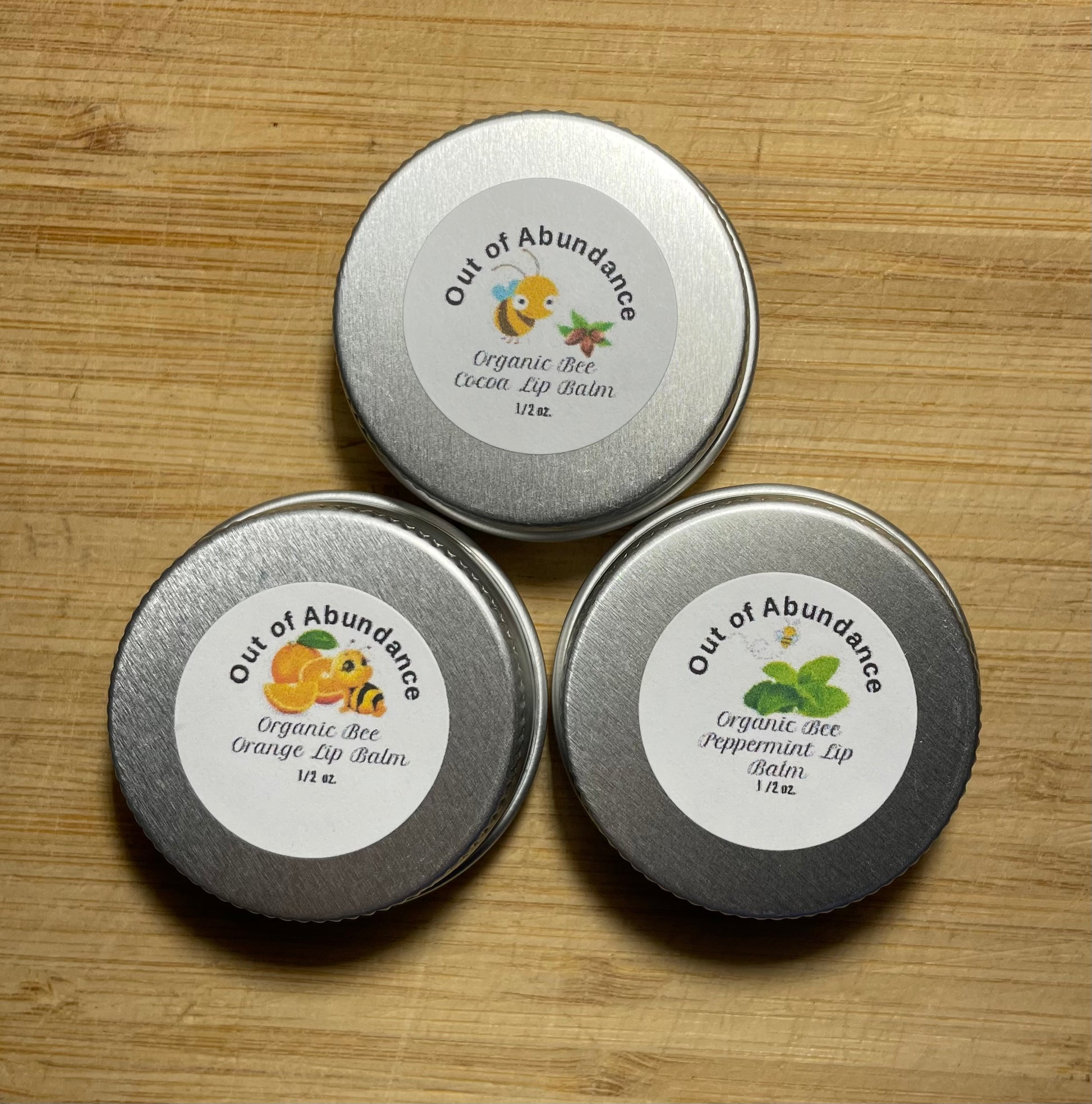 Out of Abundance Organic Lip Balms were created with love and long lasting, highly moisturizing organic ingredients in three variations; Bee Cocoa (unscented), Bee Orange and Bee Peppermint. These lip balms all feature the subtle scent of cocoa. You deserve to ditch those commercial highly processed and toxic ingredients and treat your lips to the luxury of safe organic ingredients. Both sizes of Out of Abundance Lip Balms come packaged in sustainable, reusable packaging. The 1 oz. and ½ oz. sizes of these balms compared to .15 ounce plastic tubes found commonly ensure you will be ready to soothe your chapped lips as weather gets colder.