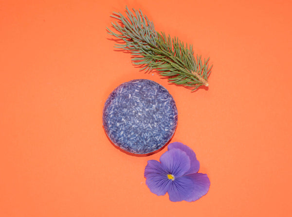 Re-energize your hair with this clean, sensual and earthy zero waste shampoo bar scented with wild berries, bright woodsy notes, and blue flowers.