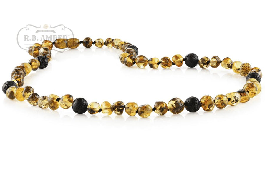 Light Green Baltic Amber + Lava Aromatherapy Necklace - Adult