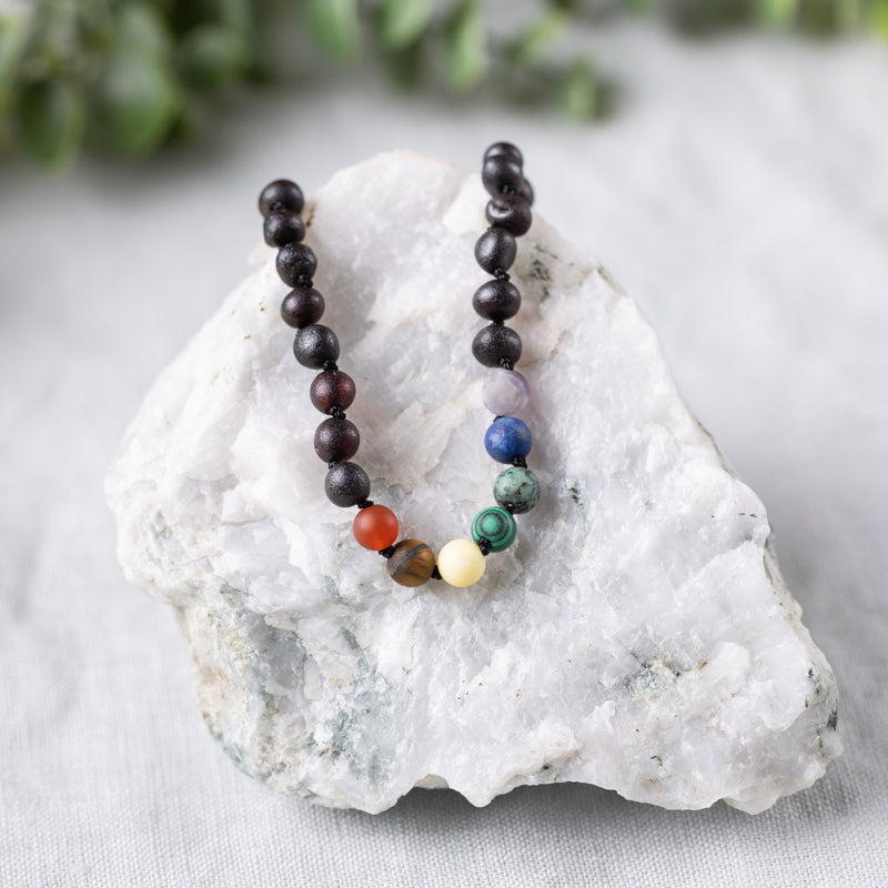 Raw Chakra Gemstones + Raw Cherry Amber Necklace - Child