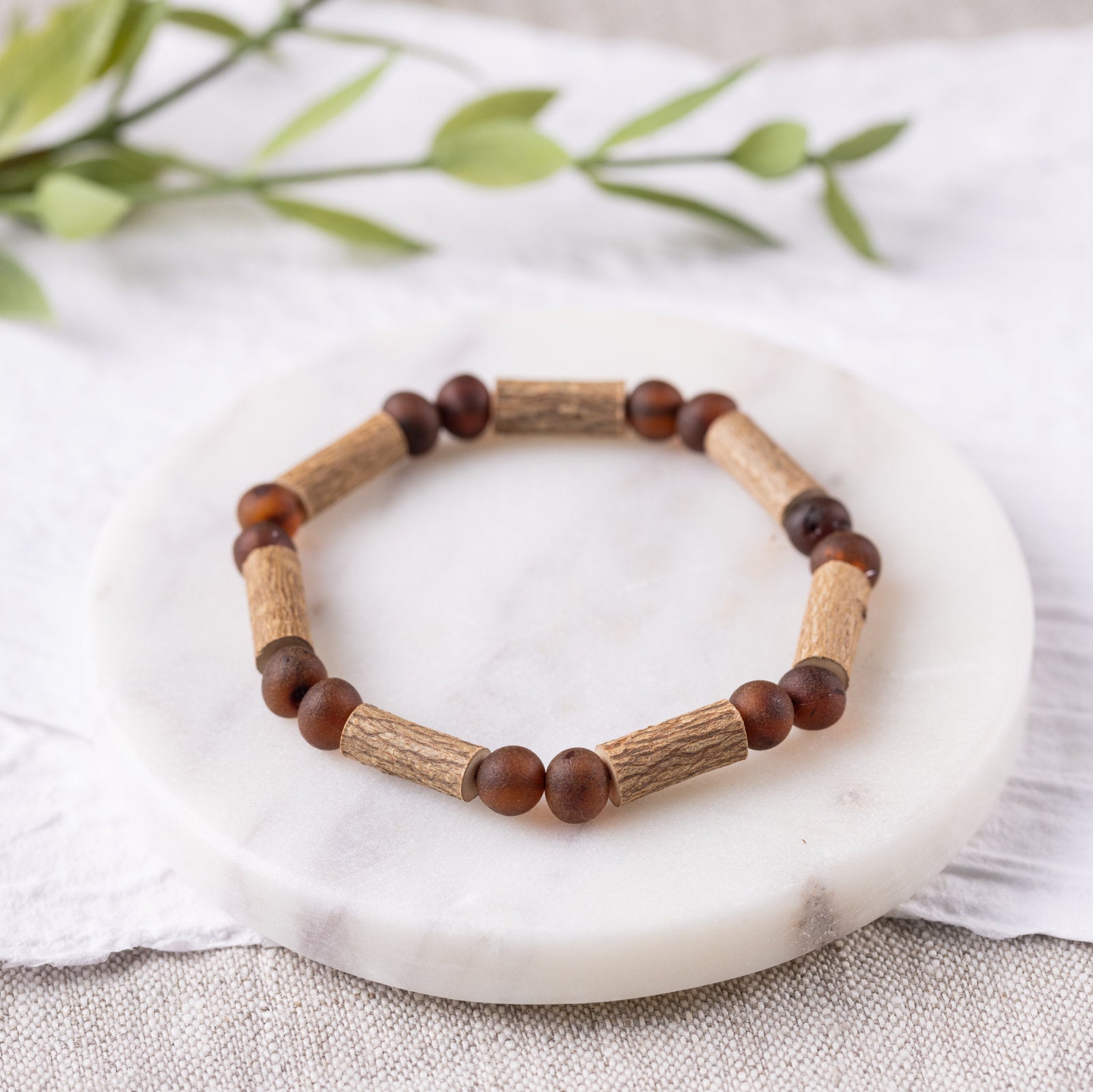 Raw Cherry Amber + Hazelwood Bracelet - Adult