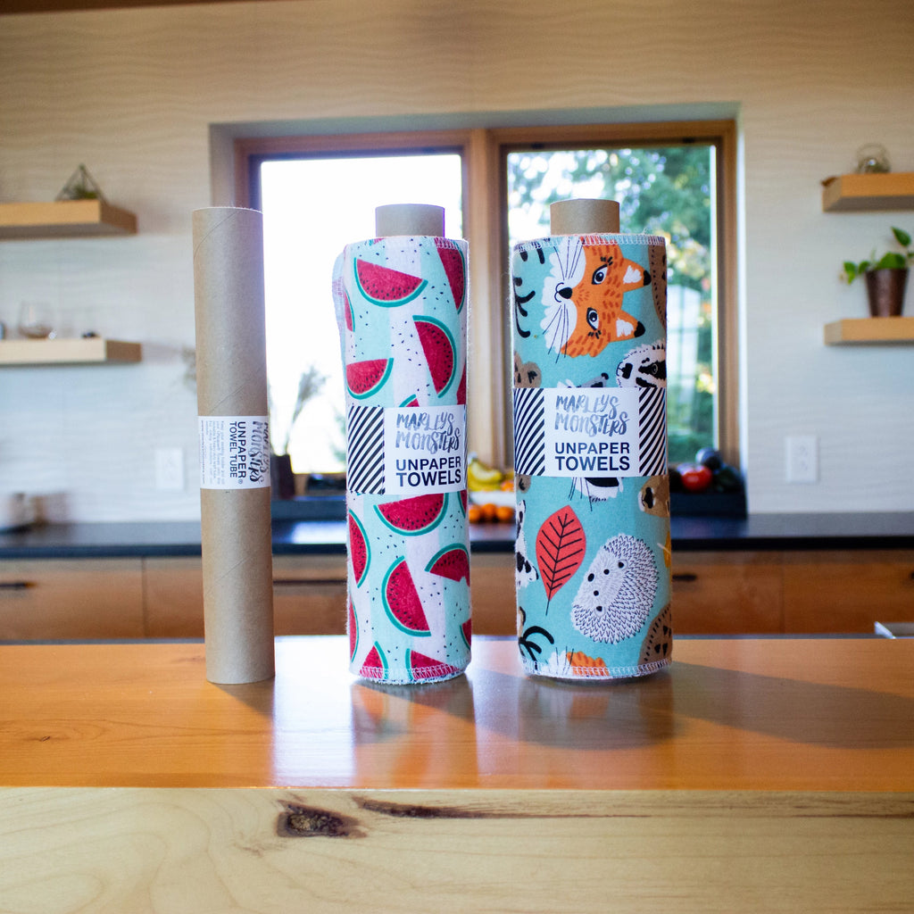 Our signature UNpaper® towels are now available rolled around a sturdy, reusable Kraft tube. All you have to do is wipe, wash, roll, and reuse.
