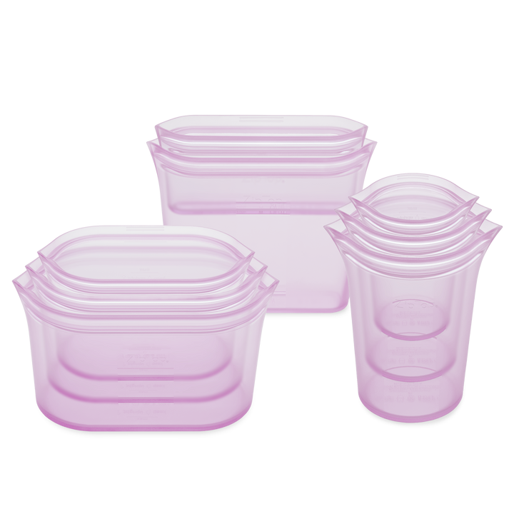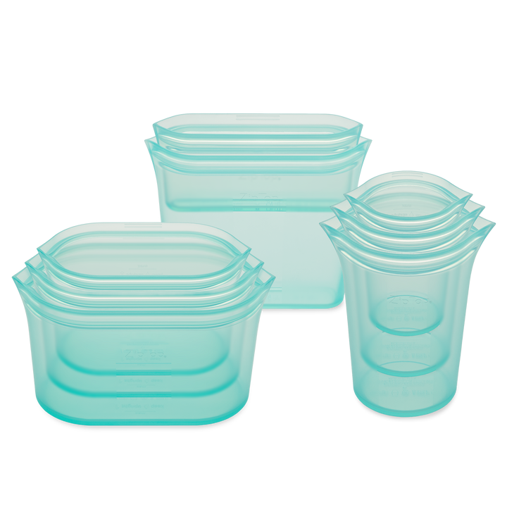 The perfect starter set. Our Full Set of 8 includes all 3 sizes of cups, 3 sizes of dishes and 2 sizes of bags. Whether you are storing leftovers, taking snacks on the go, or prepping meals for later, there's a shape for everything. Save $20 when you buy as a set. Savvy shopping!
